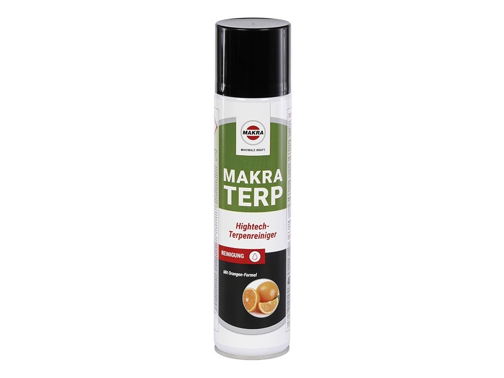 MAKRATERP je silný špeciálny čistič na báze terpénov z pomarančového oleja. Účinne odstraňuje živicu, asfalt, gumu, lepidlá, silikón, graffiti, tuky, oleje a zvyšky sprejových farieb.