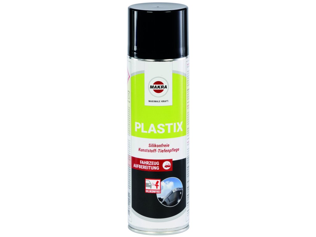 PLASTIX je špeciálny ošetrujúci prípravok pre matné a vyblednuté plastové povrchy. V jednom kroku čistí, vyživuje a vracia plastom pôvodnú farebnú hĺbku, pričom vytvára saténovo-matný lesk. Obsahuje UV ochranu, vďaka čomu predchádza vyblednutiu a starnutiu plastov. Je vodeodolný, odolný voči poveternostným vplyvom a vhodný aj pre citlivé oblasti, ako sú lakovne alebo Smart Repair dielne, kde nie je možné použiť silikónové produkty. Ideálne aj na gumu a pneumatiky.