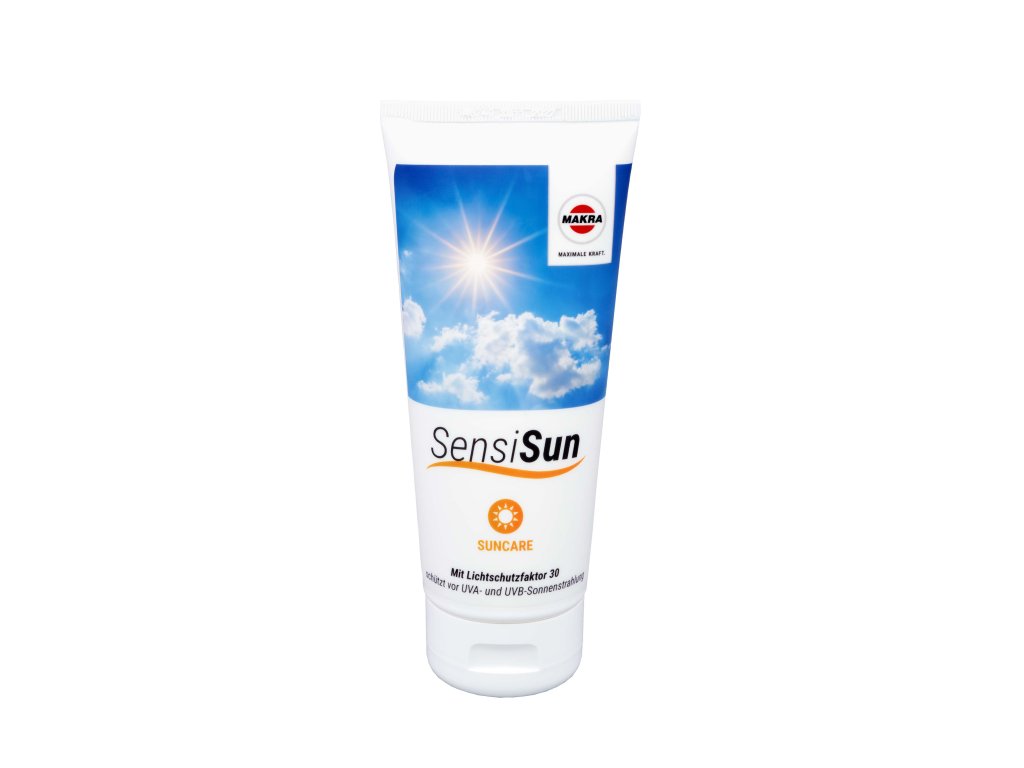 SensiSun je vodoodolný ochranný krém proti slnku s ochranným faktorom SPF 30, ktorý spoľahlivo chráni pokožku pred UVA a UVB žiarením. Je určený najmä pre profesie pracujúce v exteriéri, ako sú poľnohospodári, záhradníci, remeselníci, stavební pracovníci a technické profesie.